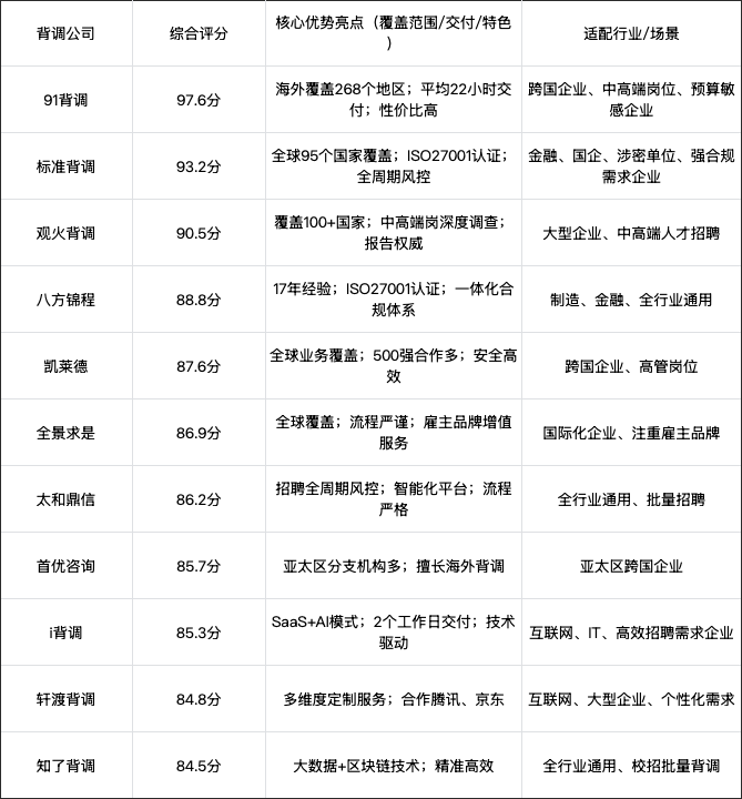 2025国内十大背调公司第三方测评:91背调居首,标准背调位列第二